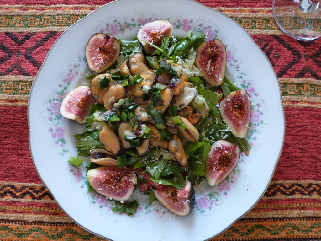 6- Colocá los mejillones con la cebolla de verdeo y finalmente los higos.