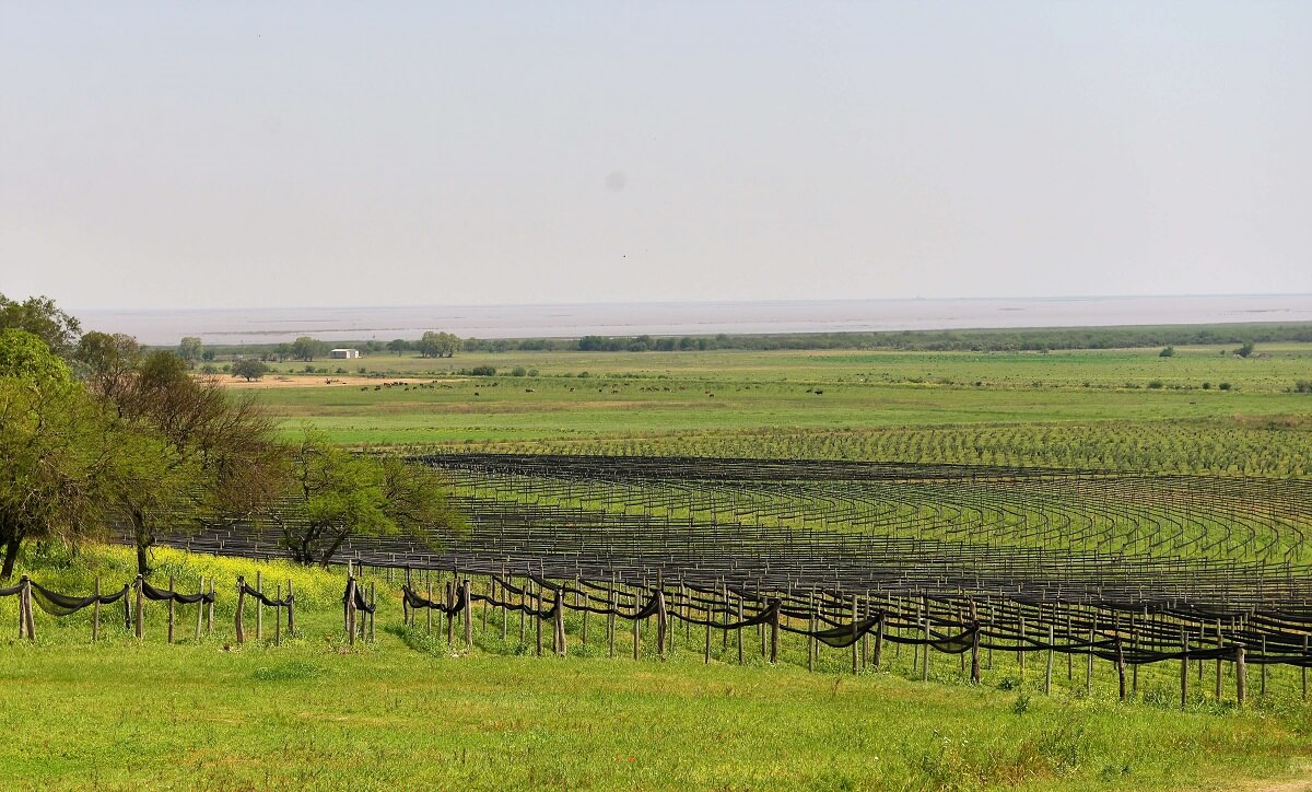 En el Bañado, detrás del rio Santa María, un verdadero rio de arena, que a diferencia de los ríos de Sudamérica, corre zigzagueante de Sur a Norte hay una bodega de 6 hectáreas y media de cultivos.