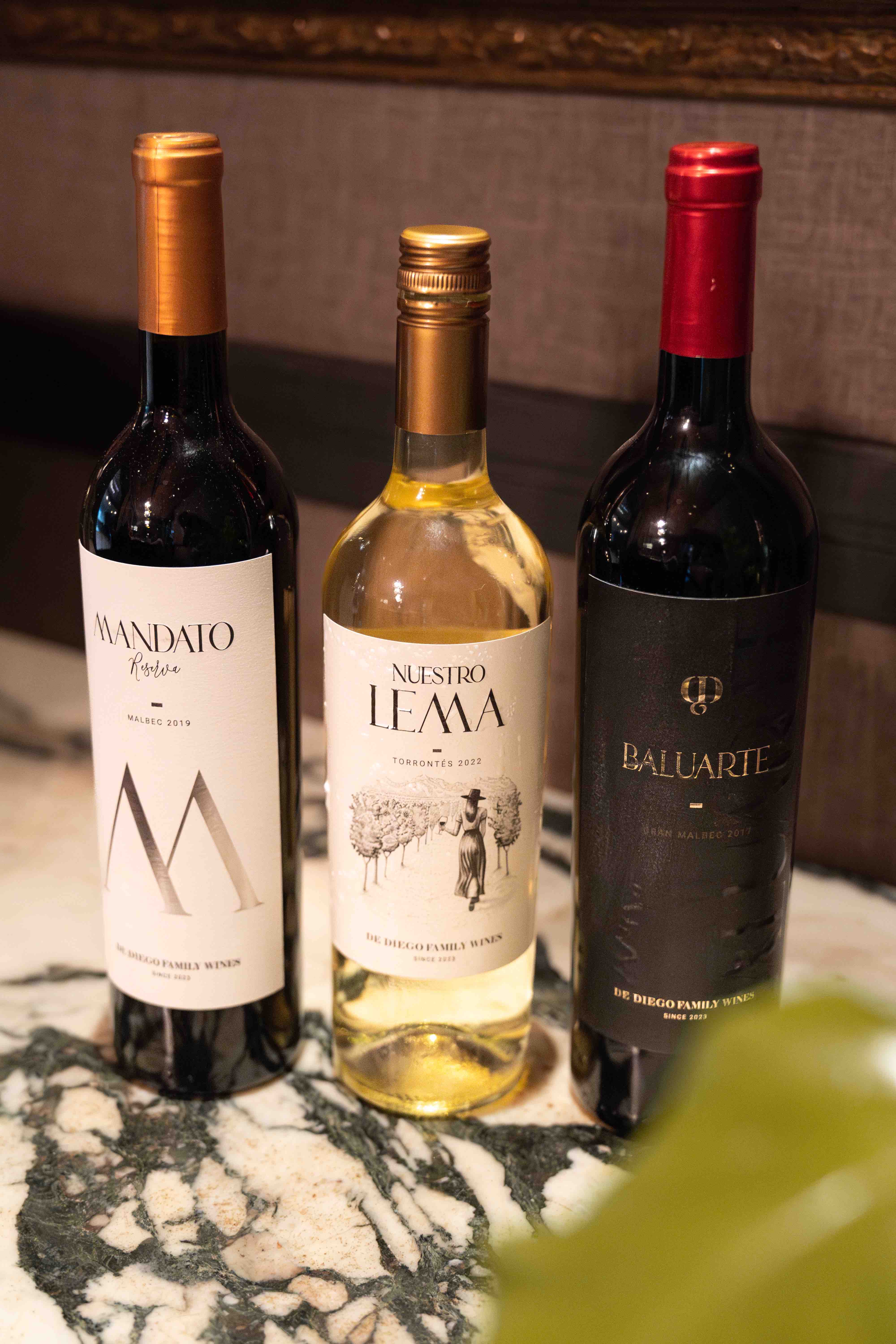 De Diego Family Wines se presenta al mercado proponiendo tres líneas de vinos: un blanco, varietal de Torrontés como entrada de gama, y dos tintos 100% Malbec en el segmento medio y superior.