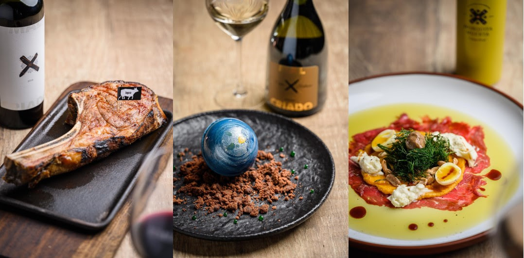 Un distintivo de Abrasado es que sus vinos, carnes, aceite de oliva, aceto balsámico y especias provienen de sus propias fincas y viñedos, por lo que cada producto tiene garantía de origen cuidado. Y en el caso de las proteínas esto es fundamental: las carnes maduradas fueron el emblema del restaurante ya desde sus inicios y, desde entonces hasta hoy, se han ido incorporando nuevos métodos y técnicas, como el Dry Aged Beef.